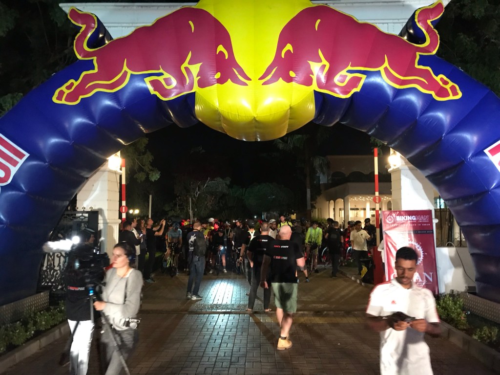 We were up at 0145 and grabbed a quick breakfast and arrived at the Red Bull starting arch at the resort entrance just after 0230. A nervous air prevailed and one unlucky rider got a puncture just before the start.