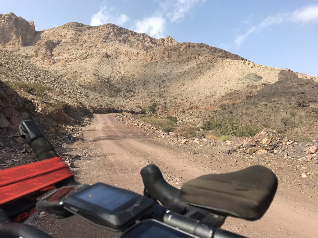 There was an optional gravel route available to the base of the Jebel Shams climb. I had checked the details and although there was more climbing on steep rough gravel it saved a considerable distance. I had set my Mason Bokeh up with WTB Exposure 34 tyres so it made sense to go for the gravel option.