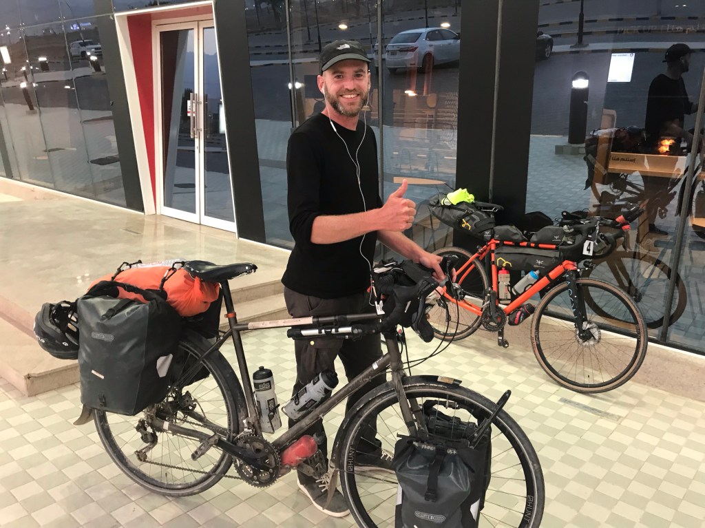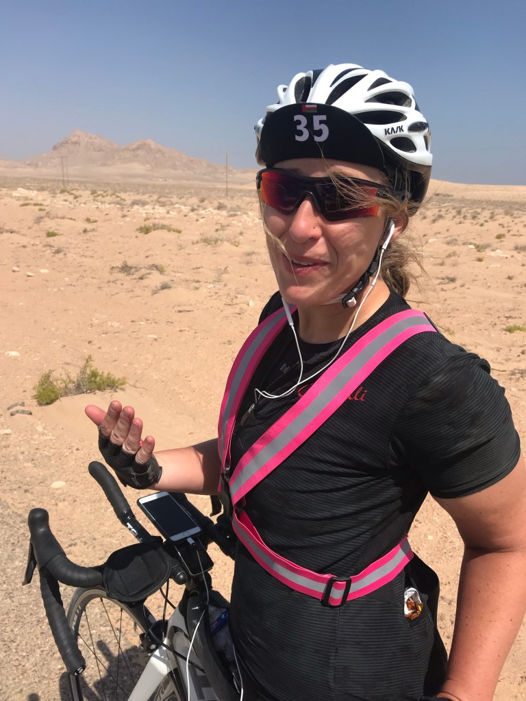 Day two was a hot day in the desert riding to the Arabian Sea – you don’t get to say that very often in a biking life! It was tough but resulted in 318 km with 1103m climbing at 27.6 km/h average.