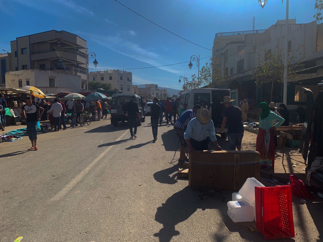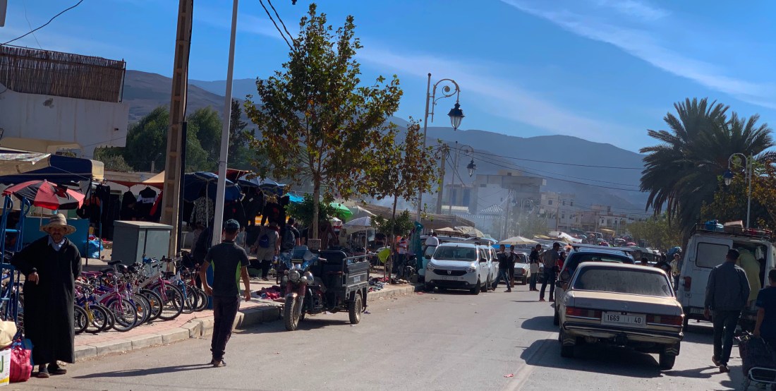 Come mid afternoon I arrived in Bni Said on market day as we headed back inland. A short distance out of town the roads were deserted and then rolling into town you are faced with the shock of a busy market, everything for sale at the side of the road, thousands of people milling everywhere, lots of noise, food being cooked and the road completely blocked at times. Car boot type selling on the outskirts and then the more established stalls nearer the centre selling just about anything and everything. Exciting to pass through but you need your wits about you on a bike!