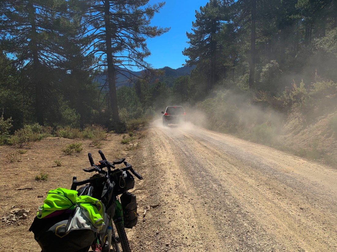 The road then rose up 1000m climbing towards Chechaouen and suddenly a turning right gave us the first taste of gravel.