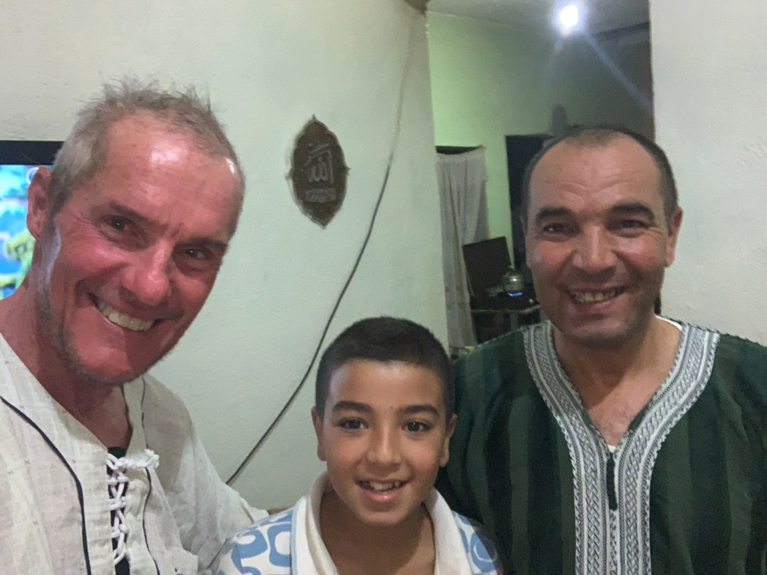 His wife, Mounia, and three young children, Hasnae, Razane and Riad were lovely and she had been warned of our arrival and we sat down to spaghetti and a bowl of soup. I had a shower and they insisted on washing all my kit. I must have been pretty ‘high’ after a couple of days riding in the warm sun. We chatted away as far as we could in broken English and French. The kindness of strangers.