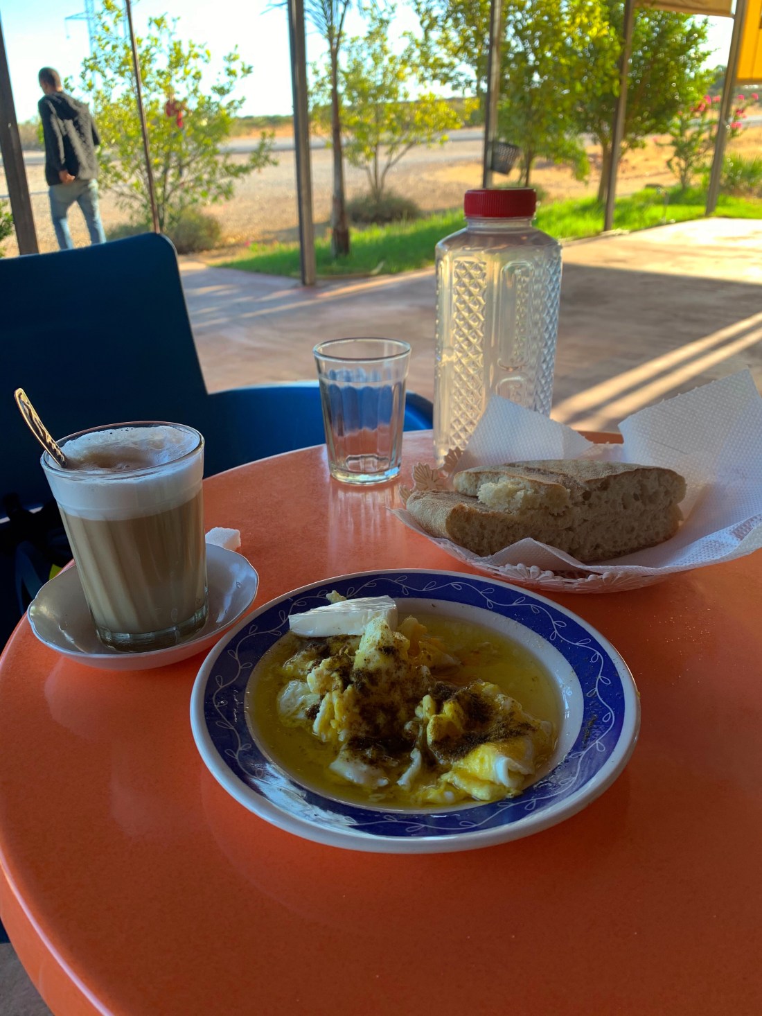 I rode on and the route crossed the main A2 motorway and started a steady climb. At the first cafe, after 13km of warm up riding, I stopped for breakfast and took time to assess my situation.
